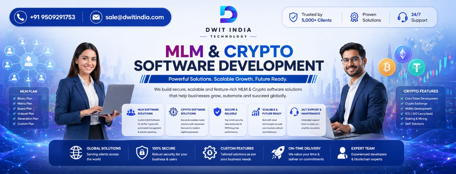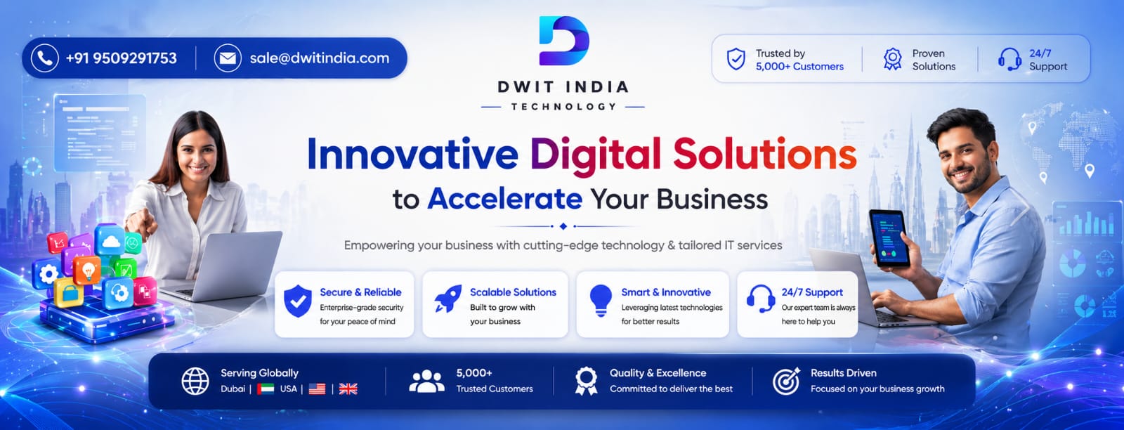 At DWIT INDIA, we are a team of innovative IT and Digital Marketing experts committed to delivering maximum value to our clients. We leverage emerging technologies to create robust solutions tailored to our client’s needs. We have become one of the most trustworthy and reliable companies for any web-related business in Jaipur, India, due to our wide range of services, including eCommerce websites, software applications, and IT services.